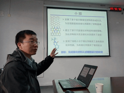 王定胜教授以《原子尺度精准合成》为题,首先是通过主客体化学策略构建了金属M-N键合M-O键合的原子级分散催化材料,解决了相关原子级分散材料负载量低的难题,发展了原子捕获策略,改变了人们对单原子的传统认知。其次是对结构的调控,实现第一壳层配位原子调控(如FeN3P)和高壳层配位原子调控(如Co1-N3PS实现了催化中心原子个数以及距离的调控,除此以外,还介绍了双单原子,三原子甚至是六原子的键极性调控,比如说炔烃选择性硼氢化反应配位原子性质调控。最后,王老师还有新的催化剂的发现,氯碱工业催化剂,这种小分子电催化剂的性能可以媲美工业电极,有望实现未来的工业化。