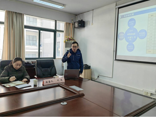 孔海霞书记对代俊副院长的到来表示热烈欢迎,并作了简短介绍。随后,代俊副院长以全国大学生生命科学竞赛(科学探究类)为例,结合去年承办湖北省决赛的经历,从国赛基本情况、竞赛反思、赛事案例等三个方面进行了分享。代俊副院长详细介绍了该赛事的背景,以及我省往年参赛的队伍和规模,分析了进入国赛团队的评审得分占比情况,指出了学生团队在参赛中存在以及要注意的一些问题。并结合自身往年带队参赛的经历,从赛事准备、组队参赛、材料提交、现场答辩等各个环节进行了详细的指导,并从该赛事需要准备的综述设计、实验记录、论文心得等方面给大家提供了很好的案例分享和建议。
