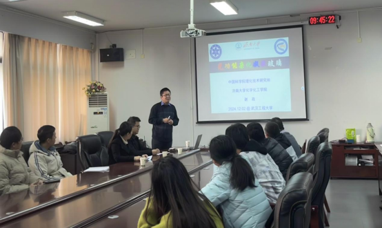 谢政教授还创新性地提出了主客体共聚制备高性能固体透明杂化材料的新方法,并构建了多维度杂化的有机硅共聚凝胶体系及其光功能透明器件。团队实现了功能材料种类、浓度以及器件形态的高度可控,为开发高性能透明光子学材料和晶体开辟了新途径。这些研究成果显著提高了材料的应用潜力和实用化价值。提问环节,谢政教授针对在场师生的提问,进行了细致全面的解答。最后,江吉周教授对此次报告作总结,并对谢政教授的分享表示感谢。此次学术讲座加强了学术交流,同时这种兼顾理论创新与应用价值的科研思路为相关领域的研究提供了宝贵借鉴。