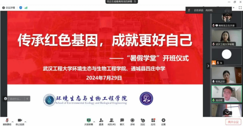 (通讯员 杨雅 黄雨泽)7月29日,韦德体育bevictor与通城县四庄中学联合开展的“传承红色基因,成就更好自己”暑假学堂开班仪式在线上顺利举行。韦德体育bevictor党委副书记郑冬洁、四庄中学副校长李建、学院团委干事杨雅出席仪式,“暑假学堂”全体主讲人、四庄中学参训学员共计40余人参加活动。仪式由学院辅导员肖志昕主持。