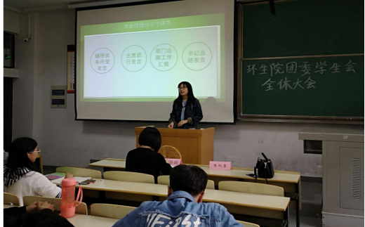 10月25日,环生院团委学生会第二次全体大会于四教4001教室顺利召开。参与本次大会的有党委副书记陈朝娟、团委副书记朱向莹以及团委学生会全体成员。本次会议主要围绕团委学生会成员的素养能力及运动会相关工作安排展开。