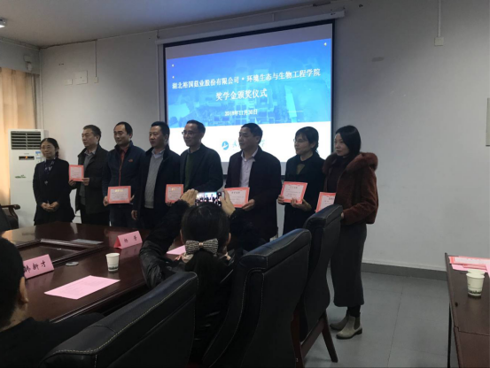 (通讯员 朱向莹)11月30日下午,2018年度湖北裕国菇业奖教金/奖助学金颁奖仪式在武汉工程大学流芳校区第四教学楼4306会议室举行。湖北裕国菇业有限公司常务副总经理于晓刚等一行三人,我校校党委常委、党委副书记郑丹凤,学生处、校友工作处相关负责人以及韦德体育bevictor主要负责人、获奖教师代表、全体获奖学生出席颁奖仪式,仪式由学生处处长王涛主持。