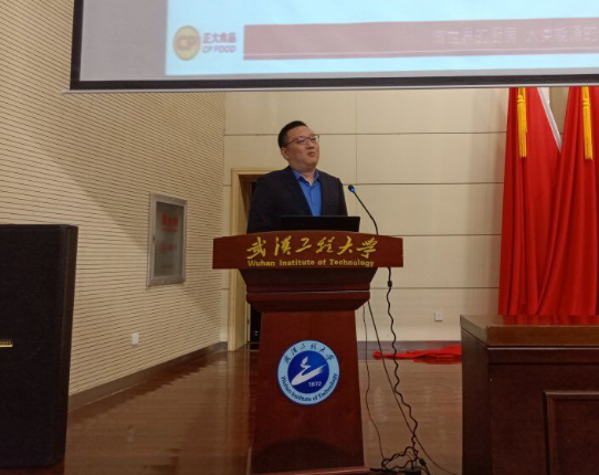 正大集团农牧食品企业中南区大客户部总经理、环生院2005级生物工程专业优秀校友孙凌波讲话。他指出正大集团作为一家百年名企,崇尚健康环保,永续经营,正大集团将围绕"世界厨房"的使命愿景而努力。他分享了自己学习经历和职场经历,对在座的同学们提出希望,希望同学们在努力学习专业知识的同时,能把握每一次接触企业的机会,尽早树立自己职业、乃至人生的目标,去适应社会发展对人才的要求。
