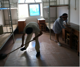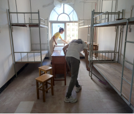 新生入学之前,学院学生党员和学生干部志愿打扫卫生,确保新生宿舍的干净整洁;为了给新生营造温馨舒适的宿舍环境,学院特地为每个新生宿舍添置了墙纸、绿植盆景、拖把等基本生活物品。