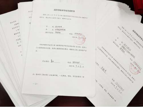 组织学生签订《高等学校开学安全责任书》