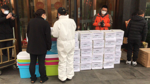 申浩轩与团队的志愿工作开展以来,不断增加工作内容,扩展服务范围。起初,为所在小区提供志愿服务,每天组织生活必需品的采购与发放,并为生活不便的居民送货上门,代老人与病人购买药品等。小区内业主的不同需求在团队共同努力下得到精准解决。随后,他与团队一起向更多人们伸出援手,先后为武汉同济医院,协和医院,武大中南医院,协和医院西区等医院运送捐赠口罩,防护服,护目镜等急需物资。不仅如此,援汉湘雅医疗队抵达后,志愿团主动为四百余援汉人员购买并捐赠了一批糕点水果等慰问物资,送去谢意并相互鼓舞。