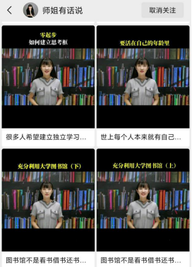 同时,团队通过设计脚本、拍摄、剪辑、发布等步骤运营“师姐有话说”微信视频号,通过短视频分享大学学习方法、考研就业经验、大学生品格塑造等内容。视频号运营两个月以来,发布图文和短视频40余个,累计阅读量10万人次。