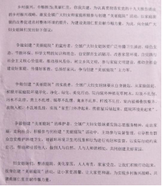 杨新宇同学参加了家乡的环境整治,一是水管管道的更新及修整;二是家庭环境整顿。7月中旬先行进行了水管管道的整改,她承担了信息统计工作,将信息数据化并进行归纳整理,协助地方有针对性且井然有序地开展工作。新冠疫情也再次警醒了我们保护环境并时刻注意环境卫生,杨同学所在的小镇组织开展了“最美庭院“竞选活动,她积极参与并承担了宣传工作,组织制作、张贴宣传单等。