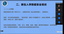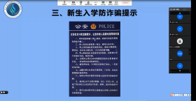邓炜为新生进行入学前防疫安全及防诈骗培训。他从入学前,来校途中,到校后三个阶段提醒同学们做好防疫物资准备,掌握防疫常识,明确防疫要求。针对开学季是诈骗案高发期、新生是易受骗群体的情况,将基本防诈骗特别是防范电信诈骗的教育做到入学之前。