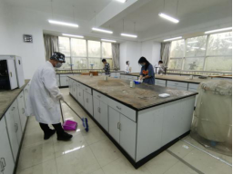 同学们根据分配的任务进行打扫工作,一丝不苟地将实验台、置物架和地面打扫得一尘不染,实验仪器摆放得整齐有序,并用消毒液对各类物品进行擦拭消毒。整个过程中,同学们有条不紊,齐心协力,互帮互助。