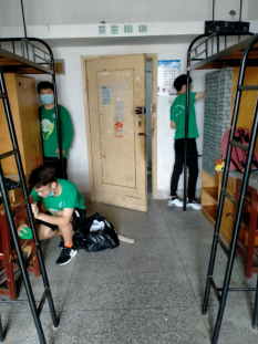 活动前,学生党支部对参与活动的成员进行了防疫和安全消杀的知识培训。李毅中同学宣读清洁消杀要求,在保障个人防护得当的前提下,分组有序开展清洁打扫、物品摆放和防疫消杀的工作。