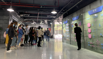 座谈结束后,师生前往光谷生物城创新成果展厅。在展厅工作人员的带领和讲解下,同学们了解了光谷生物城的发展历史以及生物农药、生物医药、精准诊疗等相关领域发展状况,其研发的相应产品在生活实际中的应用价值和生物科技领域未来走向。