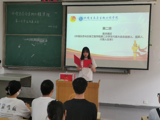 会上,学院团委副书记贾明敏宣读本次大会的总监票人、监票人、计票人名单,在场学生进行表决一致通过。