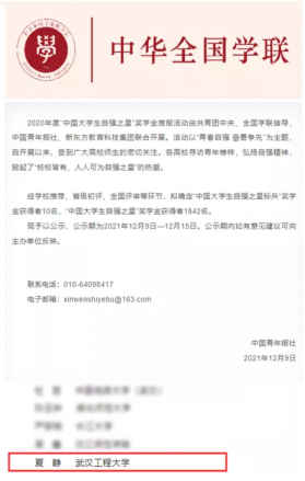 (通讯员 邓炜)近日,由共青团中央、全国学联共同组织开展的2020年度“中国大学生自强之星”奖学金评选活动,结果揭晓。我校韦德体育bevictor夏静博士,经学校推荐、省级初评、全国评审等环节,从众多评选对象中脱颖而出,获得2020年度“中国大学生自强之星”奖学金。