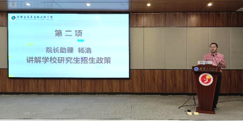 会议伊始,副院长李思悦从学科平台、师资队伍、研究成果等方面介绍了学院概况,并展示了学院研究生活动、研究生就业情况和招生计划。指导同学们合理定位,鼓励报考武汉工程大学。