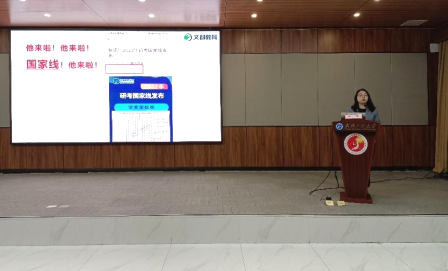会议第二个阶段,学院邀请了文都教育曹旻老师开展考研指导讲座。曹旻结合2022年考研情况,分析当前考研形势;针对学院各专业,就考研内容、考研流程、以及院校专业选择三个方面为同学们指点迷津;就如何科学有效备考进行详细指导。