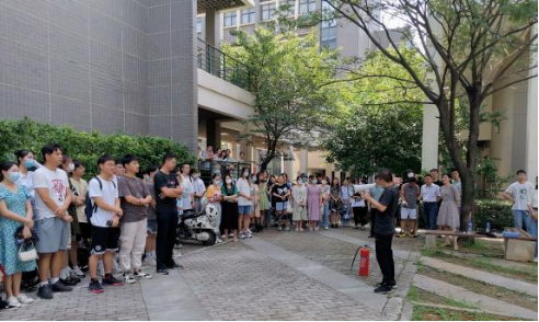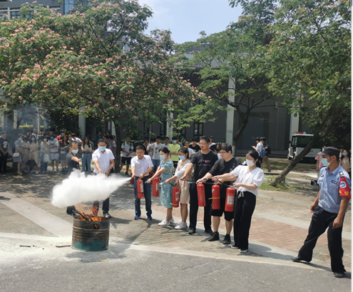 会后,学院邀请了校保卫处指导开展消防演练,通过消防实操演练来提高同学们的安全防范意识。