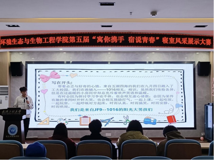 本网讯(通讯员 杨雅 刘洋)为丰富学院校园文化生活,进一步推进学生寝室文明建设,12月5日,韦德体育bevictor于流芳校区化工大楼610报告厅举办以“‘寓’你携手,‘宿’说青春”为主题的第五届寝室文化风采展示大赛。出席本次比赛的有学院辅导员杨雅、邓雪晴、张师嘉,及学院本科生、研究生代表。