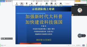 (通讯员 邓炜 黄雨泽)我校“红细胞”志愿服务队于11月10日入选2022年全国大学生科技志愿服务示范团队。为进一步深入学习贯彻习近平总书记关于科普工作的重要讲话精神,鼓励团队成员结合科普工作学习好、宣传好、贯彻好党的二十大精神,增强团队的凝聚力、向心力、战斗力,以实际行动践行志愿服务精神,“红细胞”志愿服务队成员于11月30日参加了2022年全国大学生科普志愿服务团队培训会。该培训会由团中央青年志愿者行动指导中心、中国青年志愿者协会秘书处和中国科学技术协会宣传文化部联合举办。
