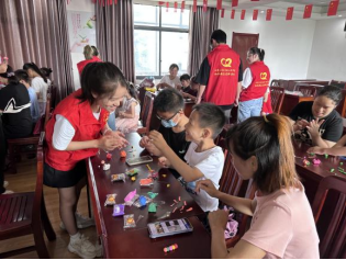 宣讲结束后,志愿者们教小朋友们用黏土DIY玫瑰花。小朋友们跟随志愿者的讲解逐步搓团、按压、粘合,并发挥自己的想象力和创造力,装饰自己的“小小花篮”。完成后小朋友踊跃走上讲台,勇敢自信地向大家展示并介绍自己DIY的一件件五彩斑斓的手工作品。