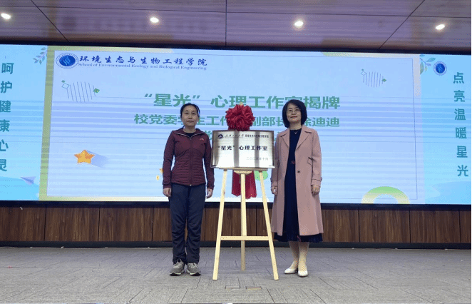 徐迪迪带来了学校党委学工部的祝贺,并与孔海霞共同为“星光”心理工作室揭牌。她介绍了学校心理健康教育工作建设情况,对学院的心理健康教育工作给予了高度的肯定,同时提出了几点希望:一是希望环生学子要重视自身心理健康,学会认识自我、悦纳自我、调节自我,主动提高承受挫折、适应环境的能力;二是希望心理干部要发挥桥梁纽带作用,积极担负起“排雷兵”“传声员”的工作角色,为心理健康教育工作提供有力支持;三是希望“星光”工作室要提升心理育人实效,把人文关怀和心理疏导贯穿育人全过程各环节,培育学生积极健康的心理素质。