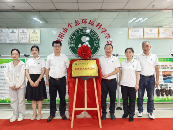 一行人前往襄阳市生态环境科学学会开展交流座谈。学会秘书长黄平介绍了学会的发展历程和运营情况,同时就襄阳都市圈碳中和创新发展研究院的建设进行了详细汇报。敖荣军从学校历史沿革、学校规模、学科建设、科学研究、办学特色等方面介绍了学校,指出学校优势学科与学会的部分专业职能相契合,希望双方能够在环保技术研发、双碳开发及交易、长江大保护等方面加强合作,实现互利共赢。随后,敖荣军代表学校为襄阳市生态环境科学学会共建创新创业实习基地授牌。