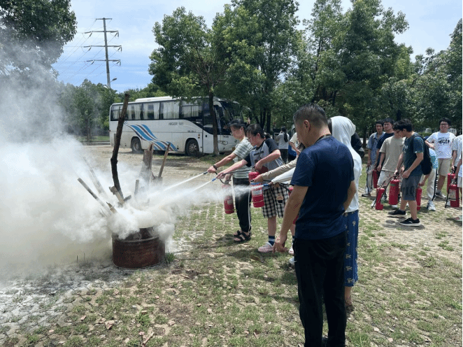 随后,学院邀请了学校保卫处欧阳诗虎老师、王子龙老师指导开展消防现场演练。他们细致地讲解了消防安全的重要性、火灾隐患的形成和特征、火灾的发生和特点、预防火灾的方法以及逃生面罩、干粉灭火器与灭火毯等消防器材的使用等消防安全知识,给在场同学进行了专业灭火示范,并邀请同学们逐一动手进行操作,让大家对如何打开灭火器、如何正确的使用灭火器有了深刻认识。