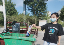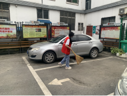 团队成员潘青源、张家音、张格等人帮助清理社区垃圾