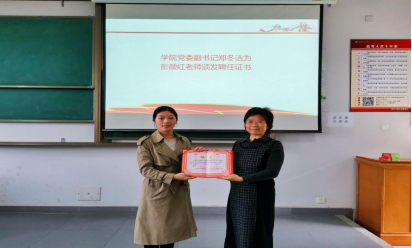 根据学校《关于选派思政课教师联系指导学院开展大学生思想政治教育工作的通知》要求,贯彻落实《关于加强新时代马克思主义学院建设的意见》《关于加快构建高校思想政治工作体系建设的意见》等文件精神,学院正式聘任马克思主义学院副教授彭颜红为学院思政课导师,院党委副书记郑冬洁颁发聘任证书。随后,彭颜红老师为全体党员讲授专题党课。