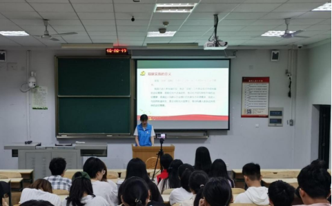 2021级生物科学类01班的张文同学从习近平生态文明思想、碳达峰碳中和政策提出、核能助力双碳目标三个方面,全面详细地带领同学学习了“双碳”目标的重大意义,呼吁全体同学践行简约适度、绿色低碳、文明健康的生活方式。