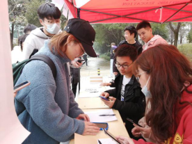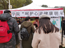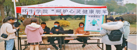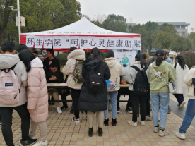 2020年12月11日,环生学院在流芳校区中快食堂门口开展了“呵护心灵健康,朋辈关爱互助”心理健康活动,活动包括心理健康知识科普、心理健康知识小测试等,全校600余人参与了本次活动。