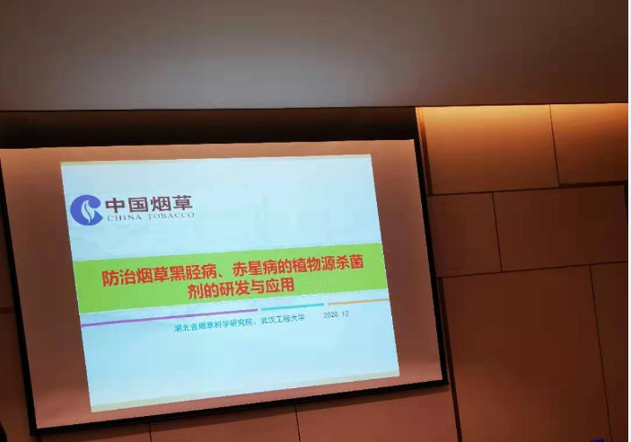 (通讯员 马科)12月14日,湖北技术交易所在武汉组织专家对武汉工程大学和湖北省烟草科学研究院联合完成的“防治烟草黑胫病、赤星病的植物源杀菌剂的研发与应用”项目进行了科技成果评价。我校韦德体育bevictor胡国元教授和湖北省烟草科学研究院杨春雷院长等课题组成员出席了此次科技成果评价会。课题组余君博士代表课题组做专项技术成果研究报告,阐述了项目的关键技术和创新点。