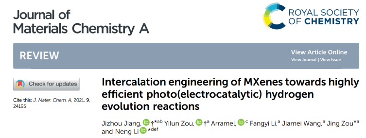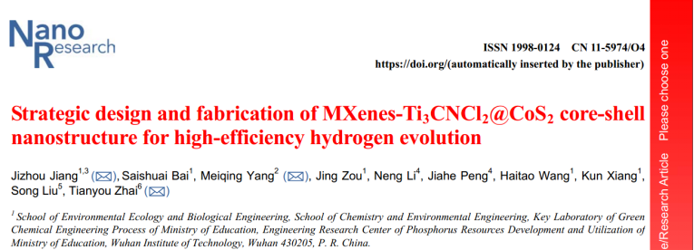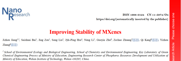 二维过渡金属碳化物、氮化物和碳氮化物,总称MXenes,是一类新兴的二维纳米材料。大多数MXenes材料是以陶瓷相MAX材料为前驱体,依次通过刻蚀、插层和表面修饰来获得高活性的二维超薄MXenes纳米片,它们在储能、催化、电磁屏蔽、生命科学等领域都展现出了非常优异的性能和潜在的应用前景。江吉周课题组近期针对MXenes基材料的稳定性、催化析氢性能和插层等关键点展开了一系列的研究和总结,分别以“Improving Stability of MXenes”、“Strategic design and fabrication of MXenes-Ti3CNCl2@CoS2core-shell nanostructure for high-efficiency electrocatalytic hydrogen evolution”、“Intercalation engineering of MXenes towards highly efficient photo(electrocatalytic) hydrogen evolution reactions”、“Recent advances of MXenes as electrocatalysts for hydrogen evolution reaction”为题,发表在中国科技部鼓励发表的“三类高质量论文”期刊上。论文被正式接收后,受到了纳米研究编辑部、Nature出版社编辑部的关注,并推荐在Nano Research视频号、Nature Portfolio公众号上进行重点宣传和推送。