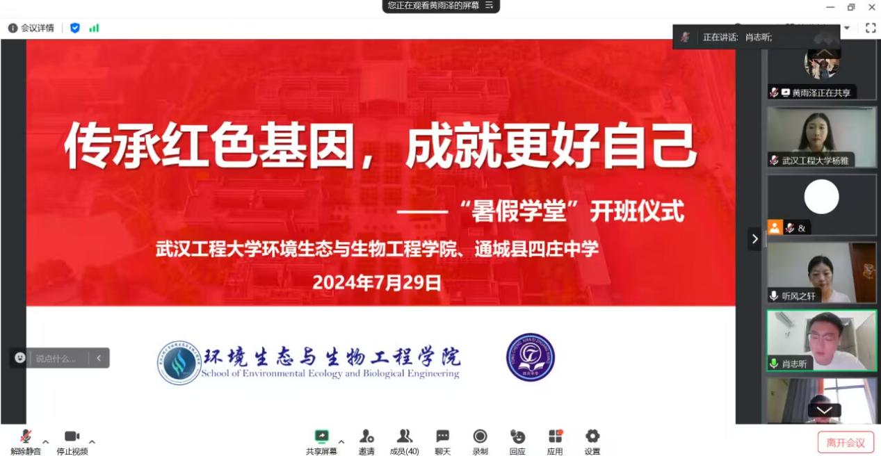湖北日报客户端讯(通讯员 吴欣)7月29日,通城县四庄中学与武汉工程大学韦德体育bevictor联合开展的“传承红色基因,成就更好自己”暑假学堂开班仪式在线上顺利举行。