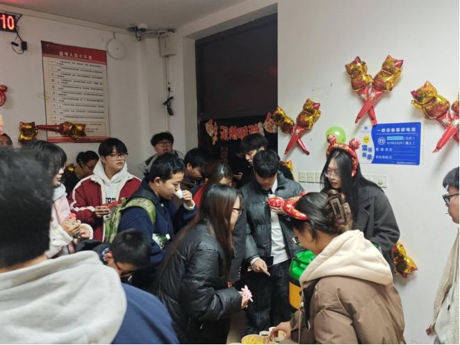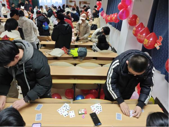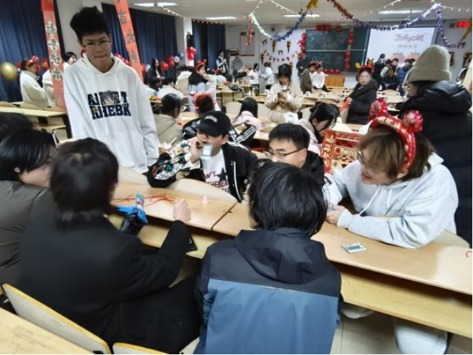 本网讯(通讯员 肖志昕)12月31日晚,环生学院在L1203教室成功举办了一场别开生面的元旦游园会。此次活动吸引了众多师生踊跃参与,现场张灯结彩,洋溢着浓厚的节日氛围,成为了校园里一道亮丽的风景线。