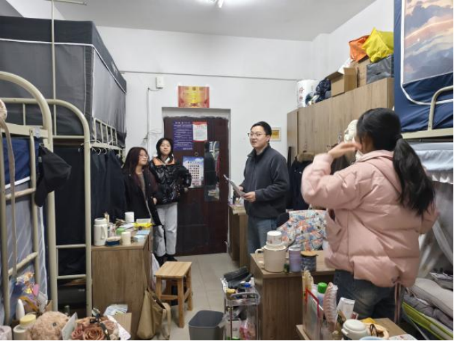 2月23日晚,各年级辅导员深入学生宿舍开展返校暖心慰问,与学生们话家常、聊规划。同时检查了宿舍的消防安全、用电安全、卫生状况等问题,并叮嘱同学们要共同营造安全、文明、和谐的宿舍环境。