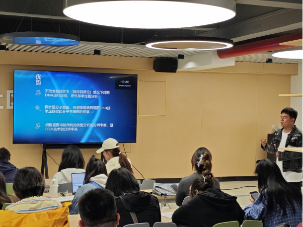 会上,八位研究生依次登台,围绕电化学传感应用、抗菌布的制备、水污染治理、微生物修复等领域,就自己的研究方向、研究成果及学术心得进行了分享。他们的报告内容充实、观点新颖、逻辑缜密,赢得了在场师生的阵阵掌声。