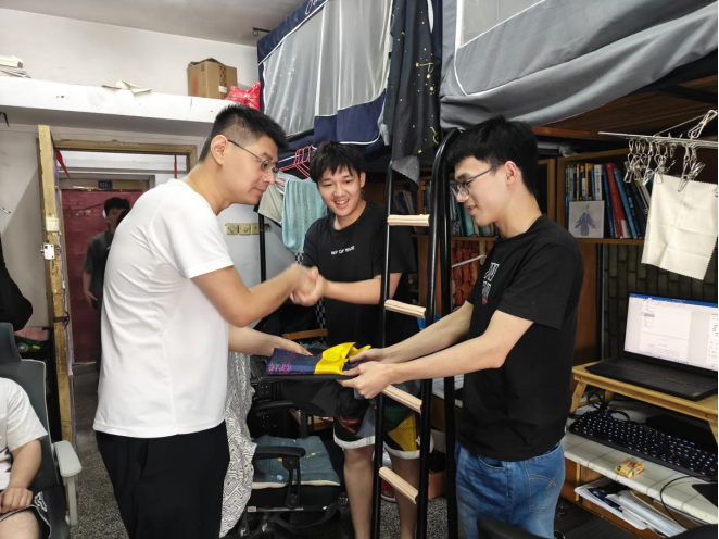 随后,老师们亲手将精心定制印上学院LOGO的学位服送至学生手中,同时送上“愿此去前程似锦,归来仍怀赤子之心”的美好祝福。既体现了满满的毕业仪式感,又传递了“母校情结永相连”的深意,以暖心行动为毕业生营造温馨的离校氛围。