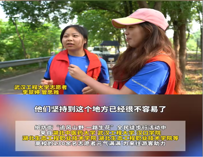 活动期间,李翠婷和管思雅两名志愿者接受江夏融媒采访,她们在徒步路上元气满满,面对记者提问,两人分别用“我希望我们的加油可以给他们力量”和“希望大家能收到我们的鼓舞,心情都变好”表达对运动员们的鼓励和关心。不仅如此,所有“红细胞”志愿者在赛场中努力营造热烈氛围,他们的欢呼声让运动员感受到强大的精神支持,极大地了激发运动员的斗志。