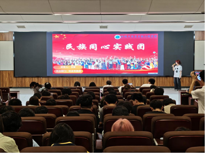 会上,2024年暑期“三下乡”先进个人代表陈清华深情回顾了去年参与社会实践的难忘经历,从初期的艰辛筹备,到实践过程中克服重重困难,再到最终收获丰硕成果,将实践中的感悟与成长收获毫无保留地向同学们倾囊相授,激励在场同学积极投身实践,在基层的舞台上绽放青春光彩。