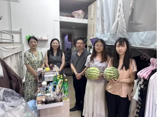 孔海霞一行来到2026届学生宿舍。各班班主任详细询问了同学们的复习进度、生活安排和遇到的困难,对大家不畏酷暑、潜心备考的精神给予高度肯定。孔海霞勉励考研学子要坚定信心、科学规划、劳逸结合,以最佳状态迎接挑战,并表示学院是大家的坚强后盾,将全力做好各项保障工作。郑冬洁叮嘱同学们在校期间节约水电,注意防暑降温,保持身心健康,谨防各类诈骗,遇到问题及时向辅导员和班主任反映。