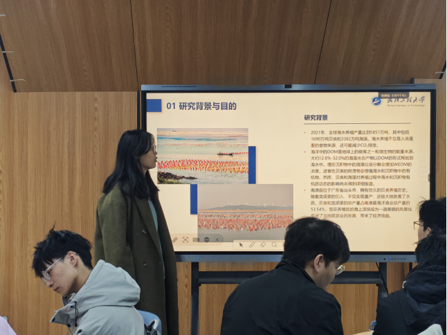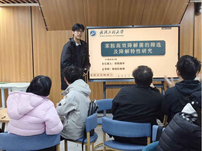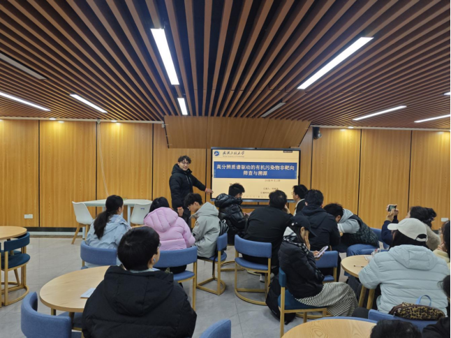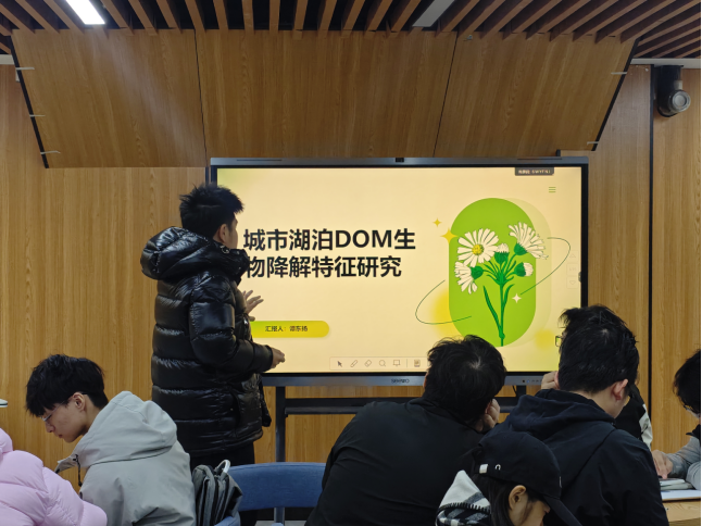 会上,六位研究生依次登台,围绕湖泊DOM生物降解、微生物群、海水及沉积物的碳循环、有机污染物非靶向筛查、苯胺高效降解菌的筛选等领域,就个人研究方向、研究成果、及相关专业权威文献进行了分享。他们的报告内容丰富详实、观点新颖独到、逻辑严谨周密,赢得了在场师生的阵阵掌声。
