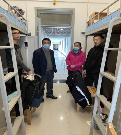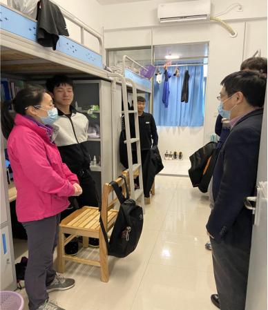 教学检查结束后,学院班子还深入到学生宿舍,详细地了解当前学生返校情况,并看望了返校学生们。院长姚槐应代表学院欢迎同学们顺利返校,并鼓励同学们在新学期、新阶段再接再励,以只争朝夕的昂扬斗志投入到学习当中,不负韶华、再创佳绩。
