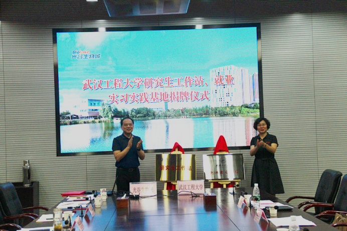 郑丹凤、丁慧琛共同为“武汉工程大学研究生工作站”“武汉工程大学就业实习实践基地”揭牌。
