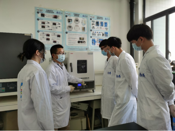 在与研究生相处中,他既是一位可以开玩笑的朋友,又是一位非常严格的导师。他对学生的工作时间有明确规定:早上8点半必须到,晚上8点半回寝室,严禁玩游戏、追电视剧,他说“玩游戏易消磨意志,追剧太浪费时间”。在他们课题组里,有两条坚决不能触碰的红线:学术诚信和安全问题。“做不出成果没关系,可以选择换其他方向,但是学术造假是坚决不允许的,测试数据和表征结果必须做到实事求是”。对于需要使用有毒试剂或易燃易爆气体的实验,在安全措施不到位的情况下一律不准做,宁愿不出成果也不做。在进实验室之前,每一位学生都要经过严格的安全考核;在独立动手做实验之前,都要经过师兄师姐的多次指导和帮带,才能开始独立操作相关仪器和设备。“我要对学生、对家长、对学校、对科研负责任。”江吉周说。