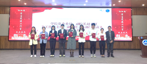 学院党委委员陈孝平、韩新才分别为2022年下半年新发展党员授予党员示范岗和新一批党员示范寝室授牌。