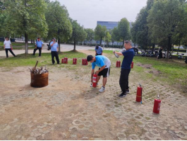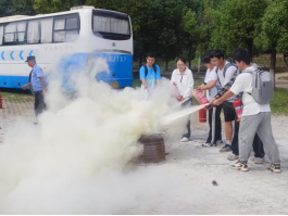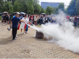 随后王老师亲自给大家做了“一对一”的专业示范,并邀请同学们现场实际上手操作灭火器。通过现场演练感受,同学们对如何打开灭火器、如何正确的使用灭火器有了深刻认识。